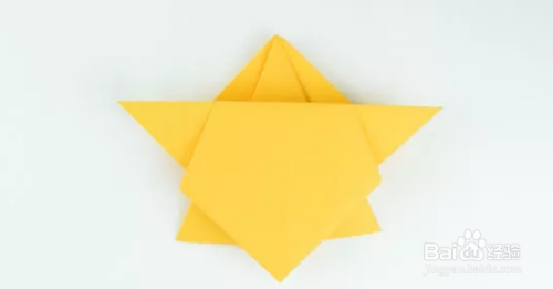 把最上面的一层折成两半,盖在上面。把你刚刚折下来的那部分的下三分之一折起来,然后折成一个山谷。