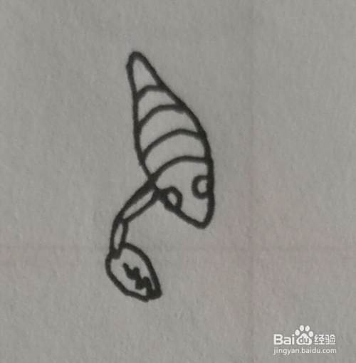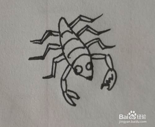 第七步继续画两侧的一节一节的后肢,一共是三对,加上前面的钳子共四对