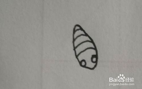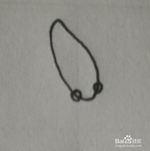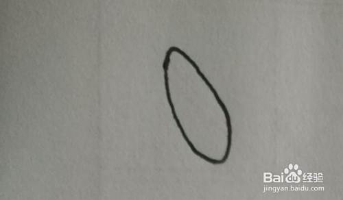 第一步,先画一个很扁的椭圆形,注意一头稍微尖一点