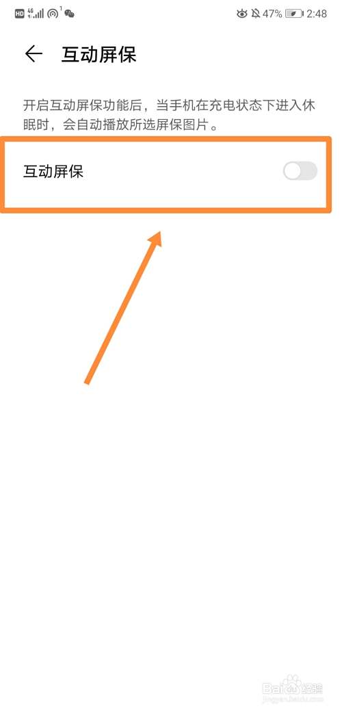 开启互动屏保后,当手机在充电状态下进入休眠时,会自动播放所选屏保图片,喜欢的设置的,可以看看、设设哦!