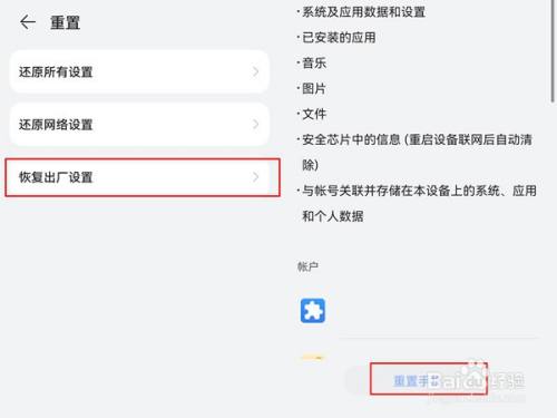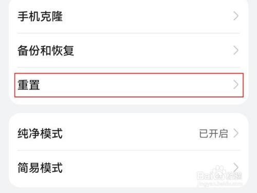 3、点击恢复出厂设置,点击重置手机即可清除缓存数据。