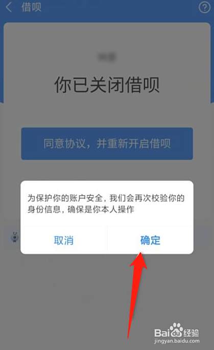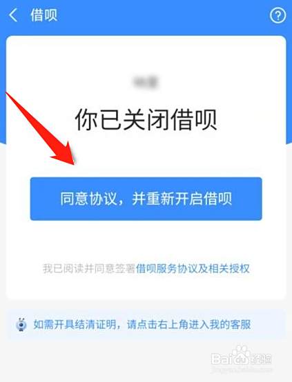 第三步,进入借呗页面,点击【同意协议,并重新开启借呗】。
