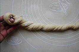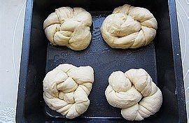 将相接的部分塞进圆圈里,放到涂过油的烤盘上,放温暖湿润处进行最后发酵。