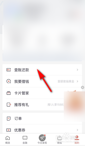 如果刚好是卡被刷爆了未还款而停用,我们回到首页点击右下我的。