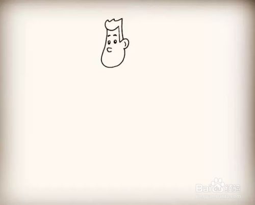 再来画出他的耳朵.他的脸是下面宽上面窄。