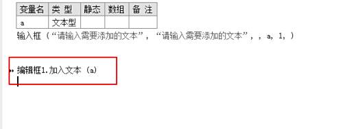 输入框 (“请输入需要添加的文本”, “请输入需要添加的文本”, , a, 1, )