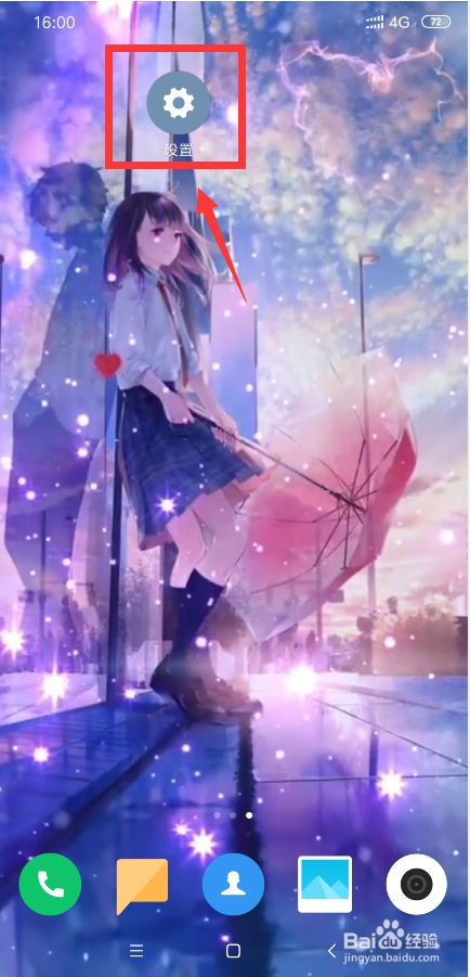 首先,使用常规方法,从手机主页面,点击进入设置