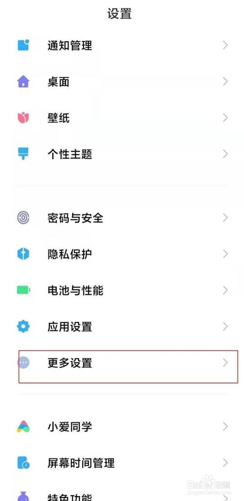 4、返回手机设置点击【更多设置】。