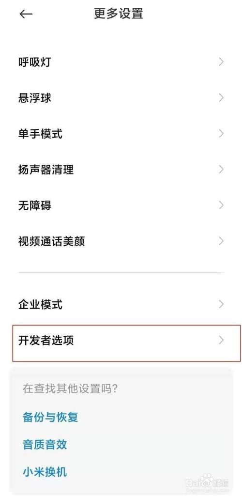 5、点击【开发者选项】并开启即可。