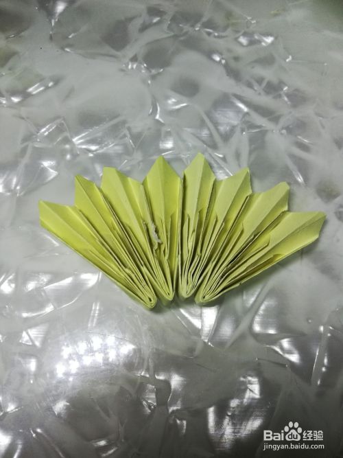 重复以上的方法,折出三个或者四个这样的小半成品,然后将每一个形状的两侧涂上胶水粘贴在一起,形成一个树叶的形状。