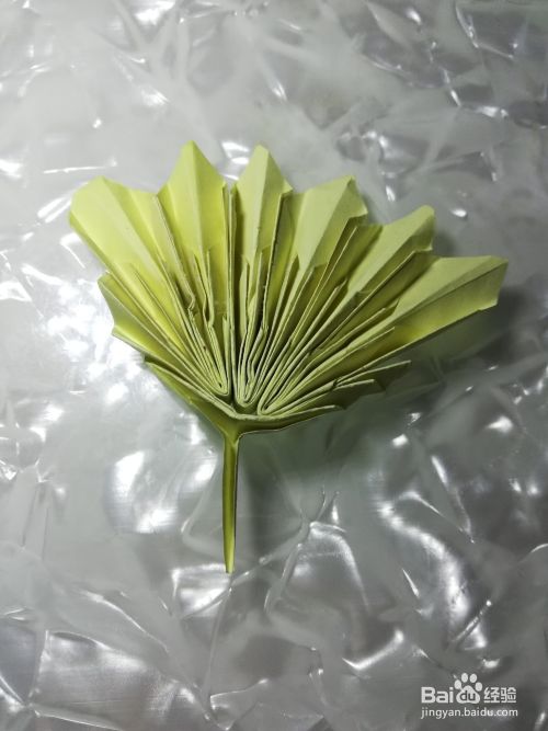 最后将折好的树叶形状和下方的这一部分使用胶水粘贴在一起,我们可以使用三个或者四个制作出来的树叶看起来很好看。做装饰品也很漂亮。