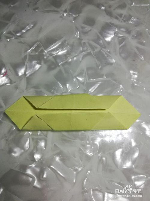 折好的形状我们接着将两个角向中间位置折叠,这样就像折扇子一样,直到折成窄窄的形状,如图所示,折成这样的形状之后,沿着中间对折,使用胶水将两侧粘上。
