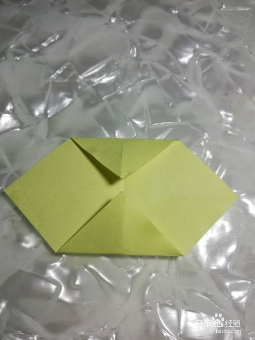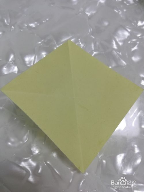 取一张正方形折纸,不需要太大,小一点就可以,沿着正方形的两条对角线折出折痕,然后将正方形的两个角分别向着中点位置折叠,如图所示。