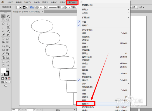 要实现颜色过渡,首先还是先把色板调用出来,点击菜单栏里的窗口——色板
