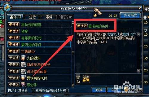 进入游戏找夏洛克领取任务,需要帮他收集冰奈斯的结晶