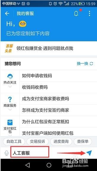再次输入”人工客服“发送,然后点”连线客服小二“就可以连接人工客服了