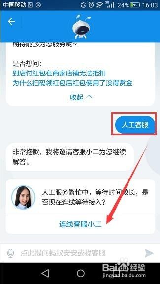 现在为您服务的并不是人工客服,而是蚂蚁安安,自动回复的;
