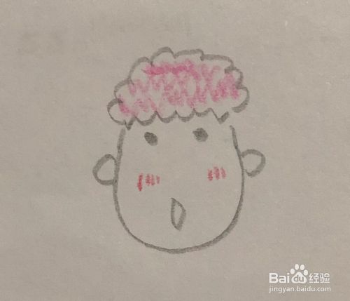 5.再然后画出发型,粉色小孩头像特有的形式。
