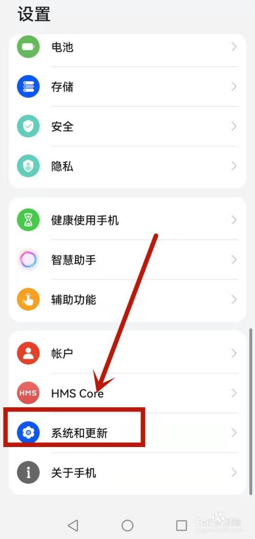 滑动手机设置界面后选择一下系统和更新。