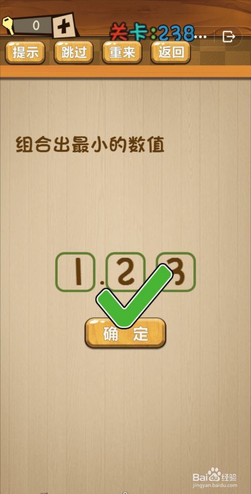 第238关先点击123三个数字,接着将题目中的圆点拖动到1右边,然后点击确定就过关了。
