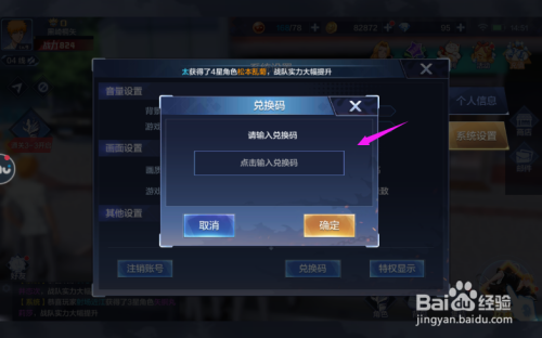单击开境界-灵压对决的【兑换码】后,输入【兑换码】,如图。