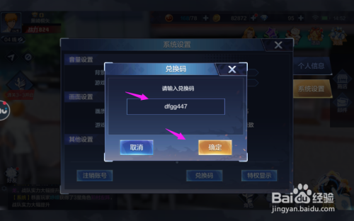 输入境界-灵压对决的【兑换码】后,点【确定】进行兑换,如图。