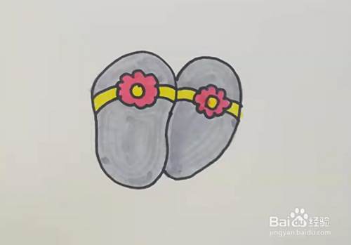 最后一步,就是给拖鞋涂上喜欢的颜色啦,可以涂自己喜欢的颜色,开心就好呀,最终的效果图如下,供大家参考,是不是很简单呢,一块来试试吧。