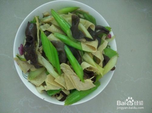 这是一份营养又美味的素菜,芹菜是一种非常常见的蔬菜,不过对于爱美的女士来说,芹菜还有清血液、润肠道、美容养颜,、肥瘦身之功效;芹菜还有降血压的功效,再配以富含矿物质营养丰富的豆皮,可降血脂木耳,餐桌上有了它,保您健康又美丽!