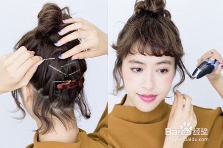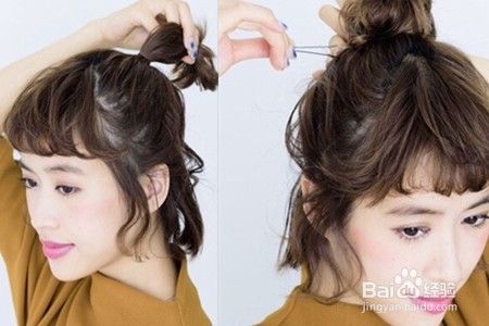 第六,可以现在头顶扎个丸子之后,把下方的头发用夹子夹住其他的头发。