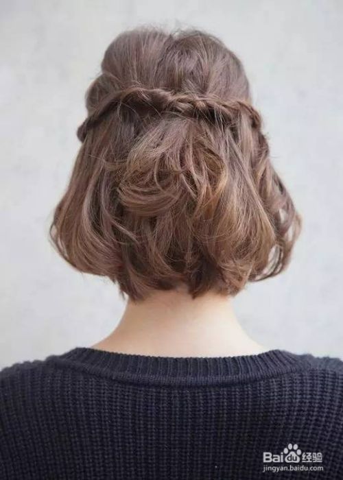 最后,也可以把两边的头发辫起来,这样把辫子扎起来。