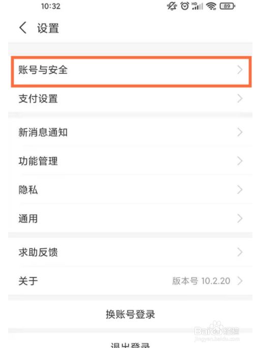 2、点击账号与安全。