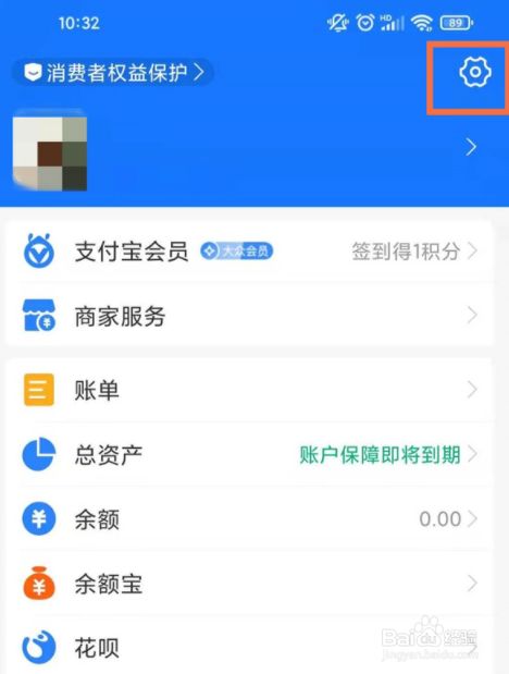 1、打开支付宝app,在我的页面点击右上角的设置图标。