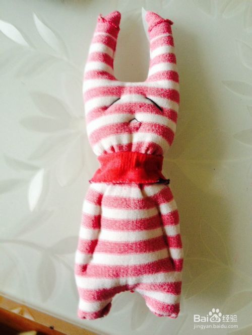 剪下耳朵中间的部分,用针线将剪开的部分封起来,翻面,塞入棉花,并将口封起来。