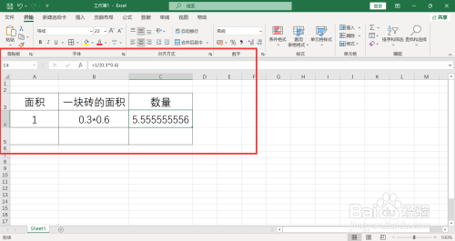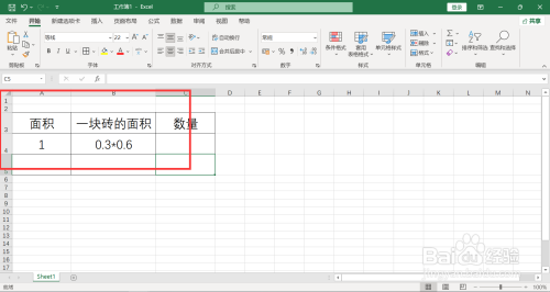 在EXCEL表格中,创建计算表格,输入总面积和每块砖的面积,计算出用砖数量。
