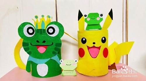 把脸部,胳膊和肚皮粘在奶粉罐,几个圆片粘成眼睛粘在奶粉罐,把鼻子,嘴巴也粘,绿色花纹粘在青蛙脸上