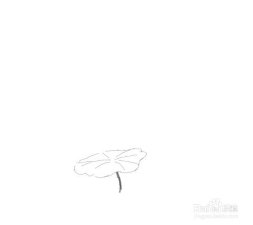 先画出荷花的一片叶子,然后在叶子上面画出叶脉,并在叶子的下面再画出荷花叶子的茎部,如图所示: