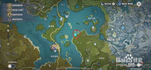 首先,找到荻花洲右下角的宝箱所在地。下图红色圈中,水边三个石柱处。