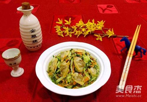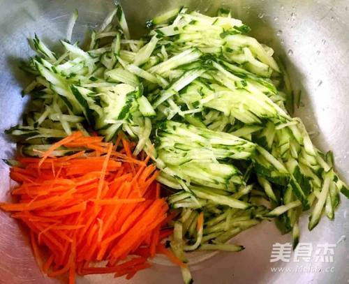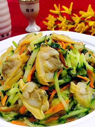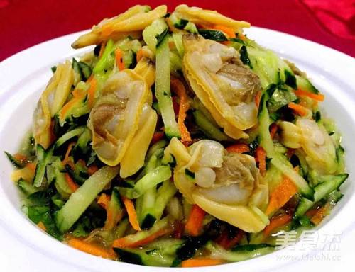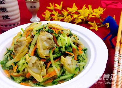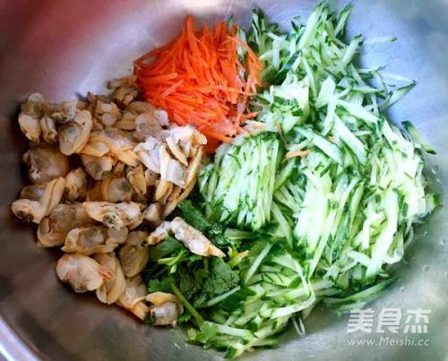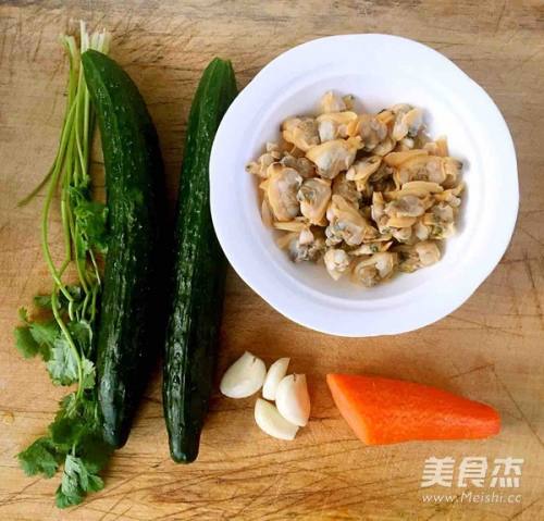 1准备原材料黄瓜、胡萝卜、蚬子肉、香葱、蒜备用