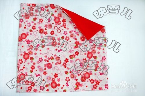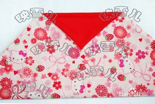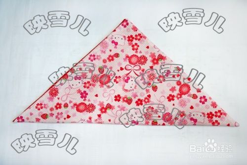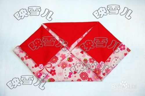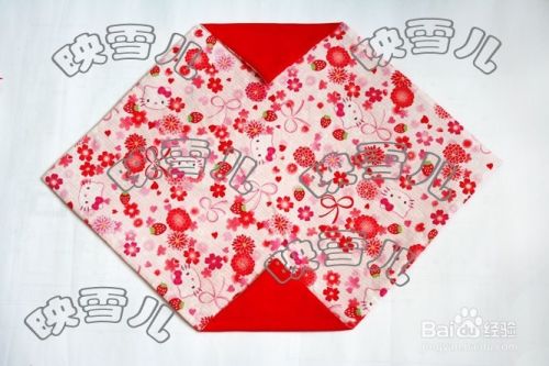 用水消笔画上三条线;成正方形。三角形的上端线如图缝合,留待穿绳用(注意不要把正反两个三角形缝在一起了);