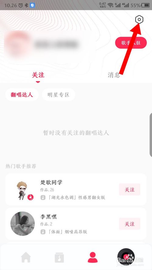 然后就打开了个人主界面,点击顶部的设置图标。如图所示