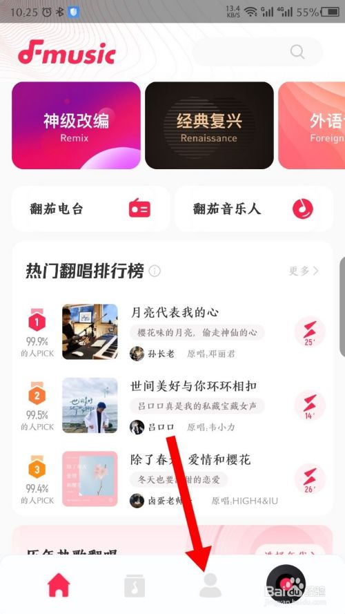 在番茄音乐的底部选项中,点击右边的头像图标。如图所示