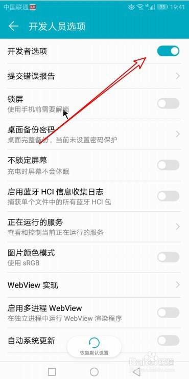接着我们在打开的页面找到开发者选项设置项,点击后面的开关使其处于打开状态。