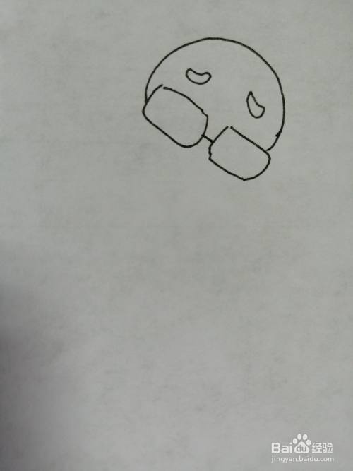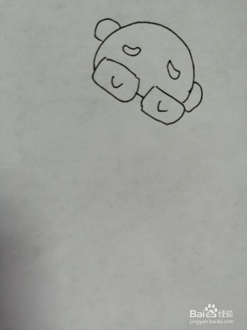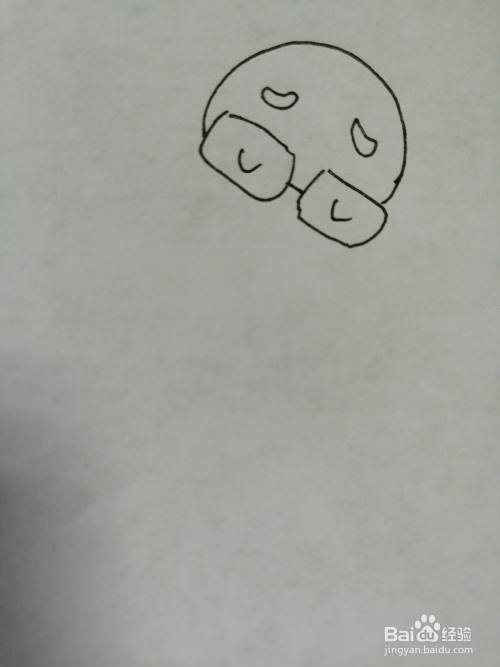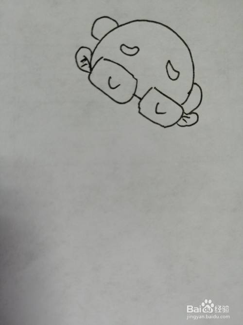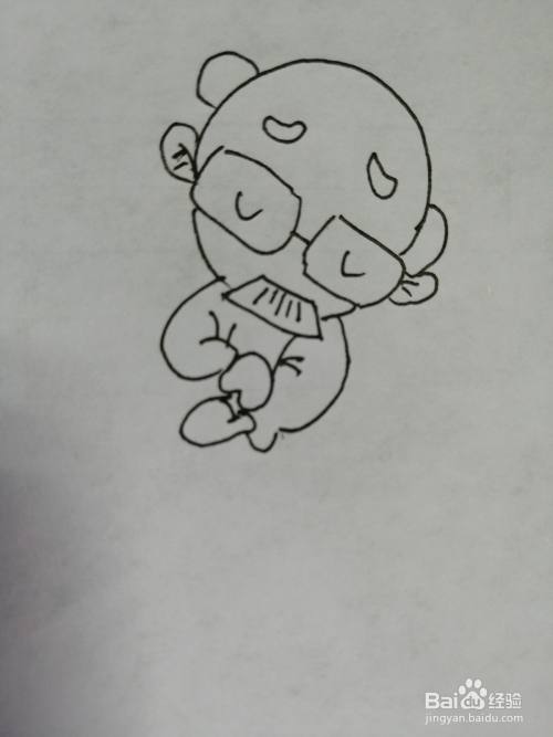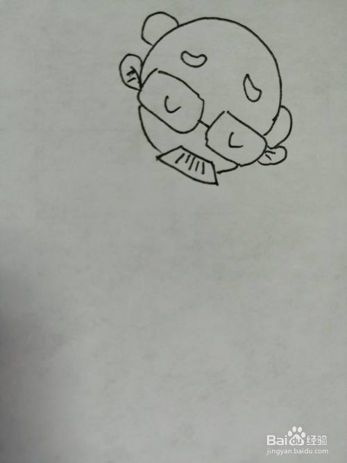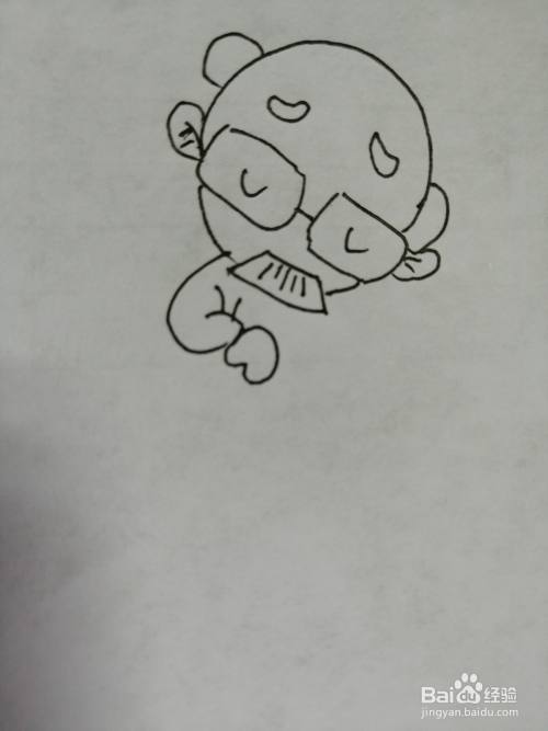 第二步,接着在老爷爷的头部里面画出弯弯眉毛和一个眼镜。