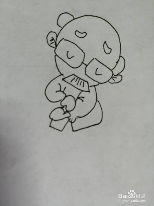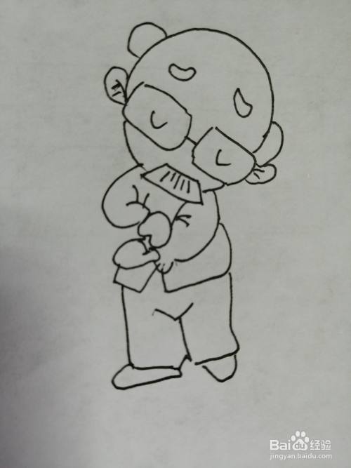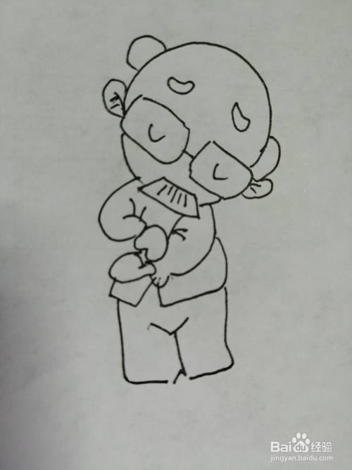 第六步,然后继续画出慈祥的老爷爷的身体部分。