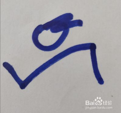 在曲线的下端点向右下引一条短线,作为右大腿。
