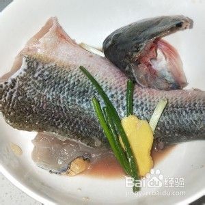 将鲈鱼洗净 厨房纸巾擦干鱼身多余水分,鱼头切下来备用,将鱼身左右两边分开,中间鱼骨去掉,把鱼肚斜切花。❗❗不要切断鱼尾。