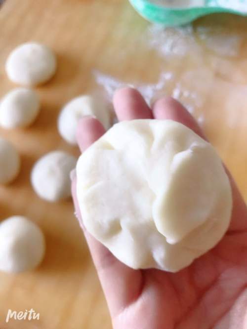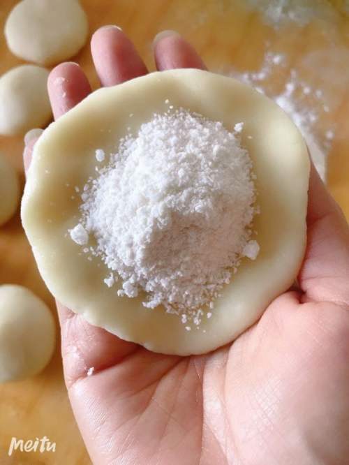 7放入馅(白糖➕面粉3:1的比例可以)喜欢什么馅都可以放 豆沙馅 黑芝麻什么的 我这临时想做没有别的