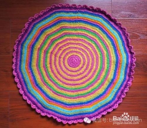 彩虹坐垫 钩法:第一圈12针长针,第二圈隔1针加一长针(共24针),第三圈隔2针加一长针,第四圈隔3针加一针,以后每一圈依次类推。这样就钩出上面美丽的彩虹地垫啦!