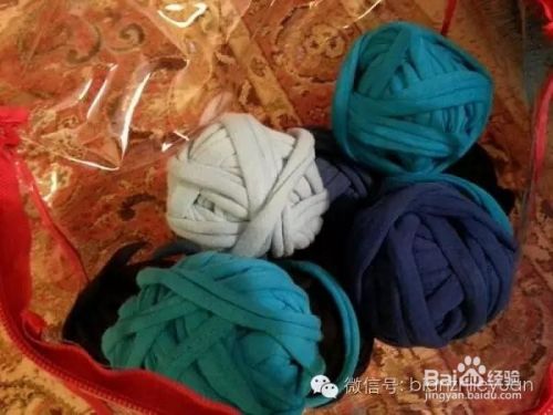 步骤3:将蓝色系列颜色的布条都撒成条形后绕成线球,使于编织