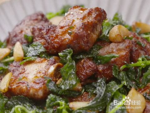 油锅放入蒜粒,炸至金黄捞出,转大火油温升到7成热,放入肋排炸4分钟,捞出,待油温升到8成热,把薄荷、排骨、蒜粒放入油锅复炸,捞出,撒上白芝麻即可。